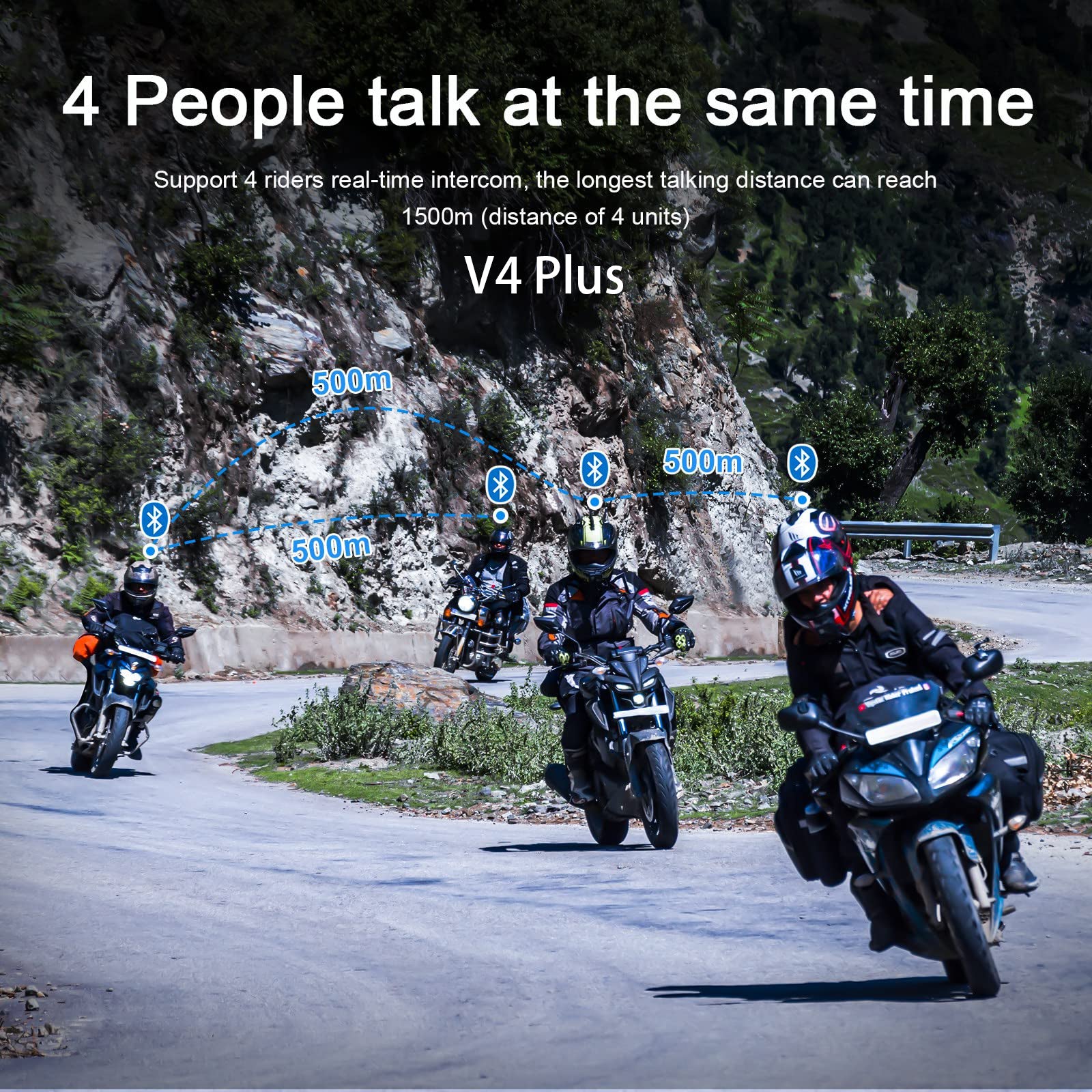 – Kompatibel mit der Bluetooth 5.1-Plattform. Bluetooth-Gegensprechanlage für 4 Personen.