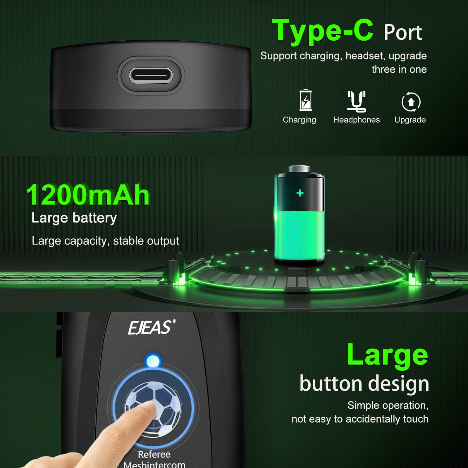 - Mesh 3.0, EJEAS F6 Professional Referee Mesh Intercom system, support up to 6 referees to MESH group communicate at the same time.