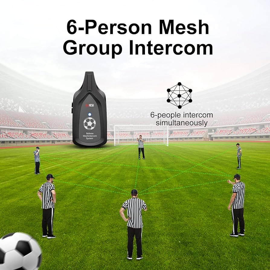 – The world's first referee intercom using MESH technology. Robust & reliable communication network. 6 people can talk at the same time.